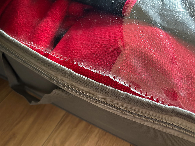 類似商品でケースの一部がメッシュになったものはあるんだけれど、ベッド下だからメッシュだと埃が溜まりそう・・・。