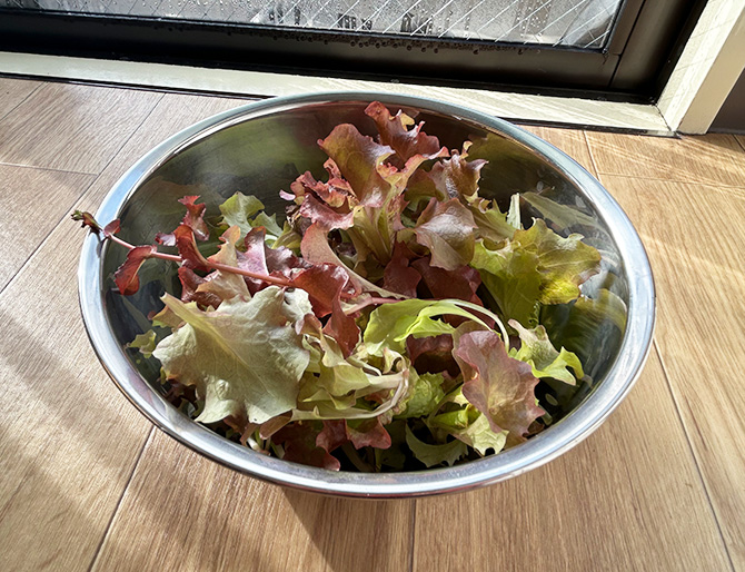 あと、昨日、ベランダプランターの“なんとかレタス”、収穫。